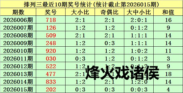 上期转头:陈列三第2026015期奖号为:202。奖号类型:组三,和值:4,奇偶比:0:3,跨度:2,大小比:0:3。