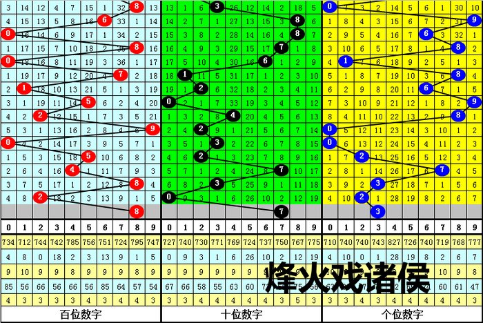大中小分析:在组选0-9号码分散图中,前10期小 号(0-2区段)出现14枚奖号,中号(3-6区段)出现8枚奖号,大号(7-9区段)出现8枚奖号,上期奖号全在小 号区域,本期细心小 号走冷,防0-2区段断区。