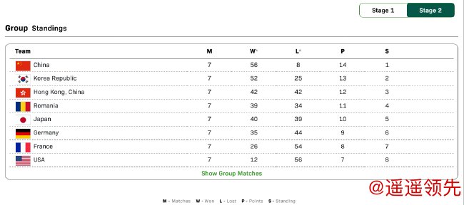 在第一阶段循环赛中,中国队与印度队、澳大利亚队和美国队同分在A组,并在3个比赛日中,先后以8-0、8-0和8-1战胜澳大利亚队、印度队和美国队,太阳城娱乐豪取3连胜,以小组第一晋级8强。在第二阶段循环赛中,中国队先后以8-1、8-4、8-0、8-2、8-0和8-0分别战胜德国队、韩国队、中国香港队、日本队、法国队和罗马尼亚队,豪取9连胜,PG电子以全胜战绩排名第一,晋级四强。